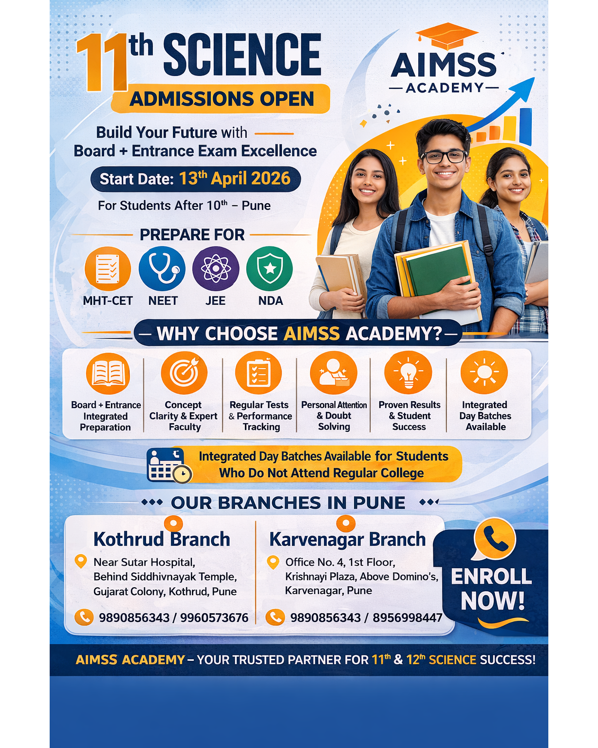 Build your future with Board + Entrance Exam Excellence at AIMSS Academy – one of the most trusted coaching institutes in Kothrud & Karvenagar, Pune.