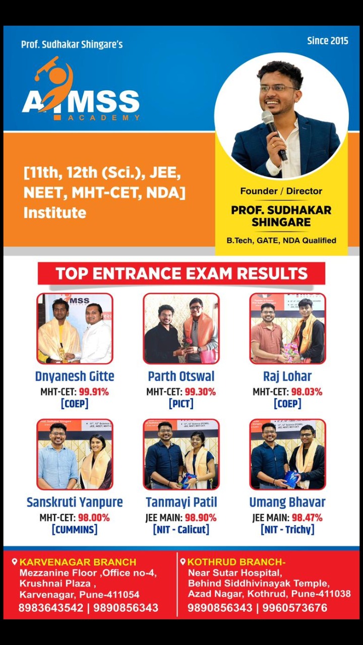 Admissions are now open for the 12th Science batch at AIMSS Academy. Our program is designed to provide complete preparation for HSC Board Exams along with competitive exams like MHT-CET, JEE, and NEET.